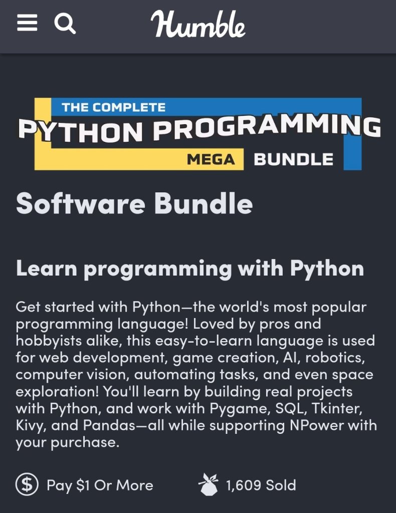 This is not an affiliate link, nor am I being compensated by Humble Bundle.